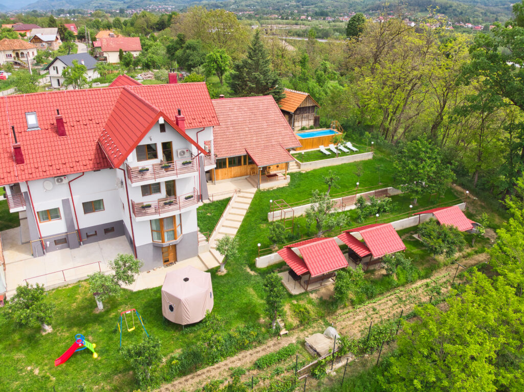 La pensiunea noastră din apropierea orasului regal Curtea de Arges vă puteți petrece timpul liber într-un mod plăcut și relaxant având o multitudine de activități pe care le puteți realiza in timpul sejurului. Acest hotel situat strategic pe ruta Transfagarasan, vă oferă o priveliste unica asupra orasului Curtea de Arges, raului Arges, muntilor Fagaras tocmai potrivite pentru relaxare și aventură. În proximitatea pensiunii poți explora minunățiile regiunii: de la impresionanta Mănăstire Curtea de Arges și misterioasa Cetate Poenari, până la peisajele spectaculoase de pe Transfagarasan, impresionantul baraj Vidraru, statuia lui Prometeu etc.. Indiferent dacă sunteți pasionați de istorie, natură sau pur și simplu doriți să vă relaxați, veți găsi aici facilitățile și proximitatea perfectă pentru o vacanță de neuitat la poalele Munților Făgăraș. Piscina exterioară in sezonul rece ofera o relaxare perfecta prin apa incalzita si tratata cu sare din Marea Mediterana, facilitate rara in zona Transfagarasan si Curtea de Arges. Foisoarele cu gratare proprii ofera in mijlocul naturii momente unice si romantice. De asemenea, impreuna cu gazda se pot face destule activitati relaxante si distractive. Cabana situata langa hotel conceputa dupa arhitectura argeseana poate fi inchiriata pentru grupuri care organizeaza petreceri de revelion, aniversari etc.
